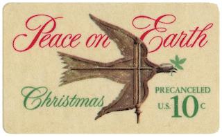 Making its debut in our 2023 holiday coverage and now assuming its place as a perennial Baedeker feature: The stories of, respectively, the very first Christmas stamps—yes, stamps, as on letters and cards of yore—issued in the world (the first being a distinction held by Canada) and in the U.S.; and of the first self-adhesive stamp, which happened to be a Christmas 1974 issue by the USPS featuring an illustration of the weathervane from George Washington’s Mount Vernon home. Self-adhesives had a rather tortured history—and in fact went out of print for 15 years until the USPS issued the 29-cent Eagle and Shield stamps in 1992. Thanks to our friends at the legendary Mystic Stamp Company in Connecticut for this invaluable historical contribution to our holiday overage.